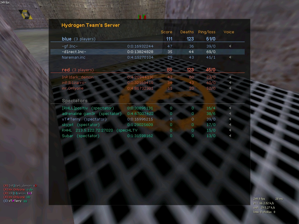 19:00 TAU vs VT -->Hydrogen Team's Server<-- 217.199.218.180:27016 20:00 MT vs BTW -->Intrepid Server<-- 217.199.218.183:27024 [H2] vs ubt -->Hydrogen Team's Server<-- 217.199.218.180:27016 21:00 Inc vs InR -->Hydrogen Team's Server<--217.199.218.180:27016