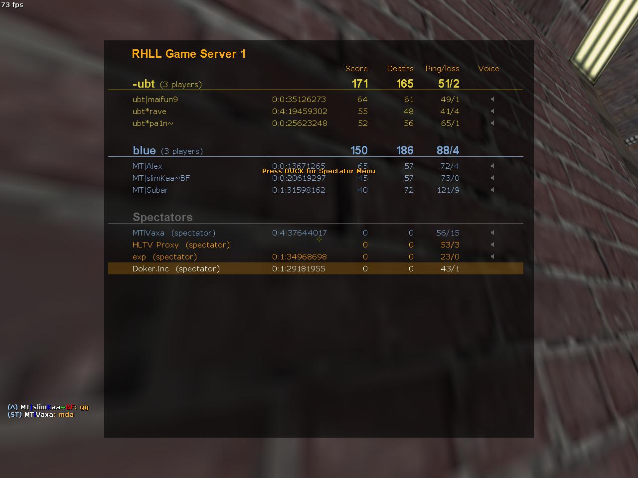 30.10.10 19:00 TAU - H2 (positiv) -->RHLL Game Server 1<-- 77.220.186.38:28510 NG - SA (hrumka) -->RHLL Game Server 2<-- 89.20.147.131:30262 20:00 SP - Inc (Dstyle) -->RHLL Game Server 1<-- 77.220.186.38:28510 Inr - BR (Subar) -->RHLL Game Server 2<-- 89.20.147.131:30262 21:00 MT- ubt (doker) -->RHLL Game Server 1<-- 77.220.186.38:28510